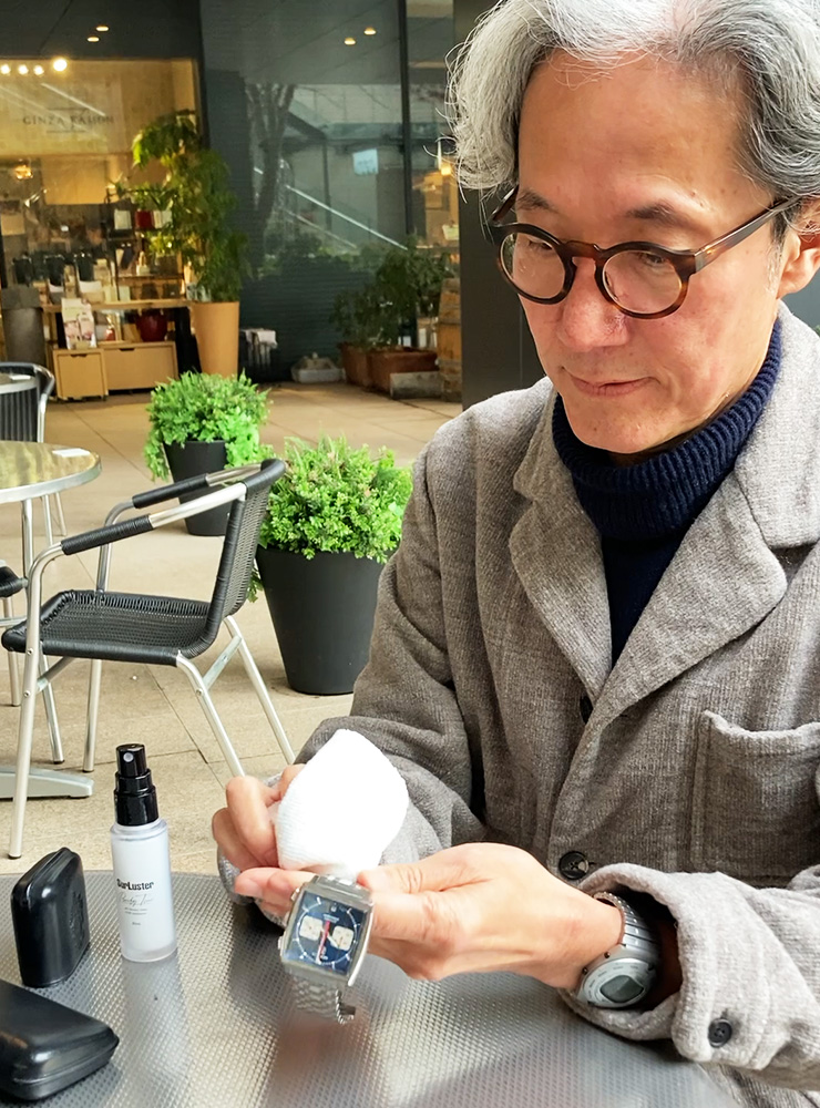 僕は職業柄、毎日時計を着けかえるもので、1本1本の時計にはそこまでケアの時間はかけていませんでした。ただ、ダイバーズウォッチを海で使った後は、水洗いをして回転ベゼルに詰まった海水の塩分なんかを落としたり、ランニング用の時計の汗を拭ったりはしていました。昔のランニングウォッチは、汗をそのままにしておくと塩が吹いて、裏蓋の被膜が剥がれてきたりするようなものもあったので(笑)。