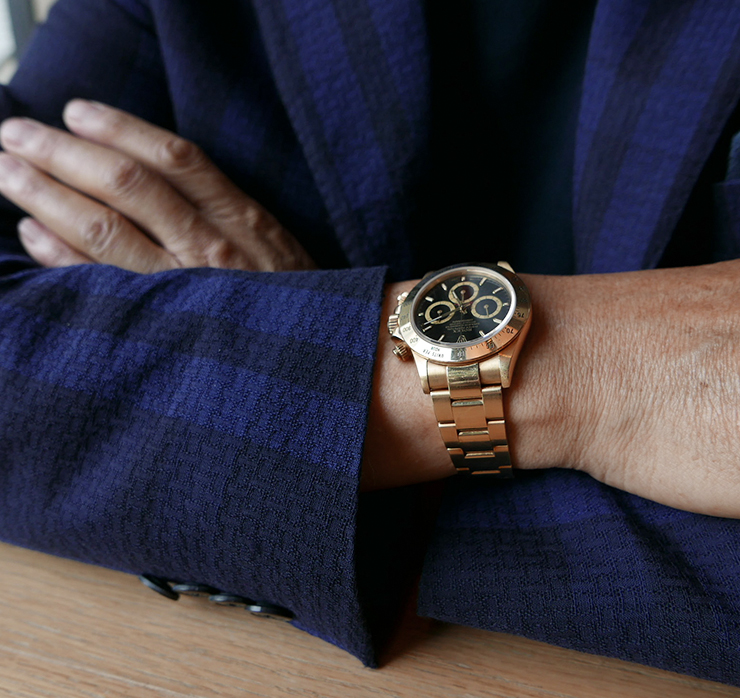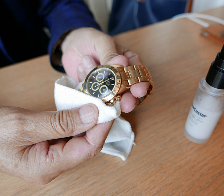 だいぶ違うものですね。これは94年に結婚祝いとして父から譲り受けたものなんですが、時間が経ってくすんでいた金の色が蘇った気がします。年齢的に自分には似合わないとずっと思っていて、最近ようやく着けだしたんですがより良い時計に見えますね。スタイリングの仕事のときは神経使うのですが、お恥ずかしい話プライベートで時計のケアなんて水洗いくらいしかしてこなかったもので。