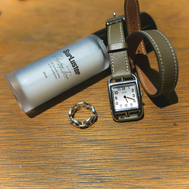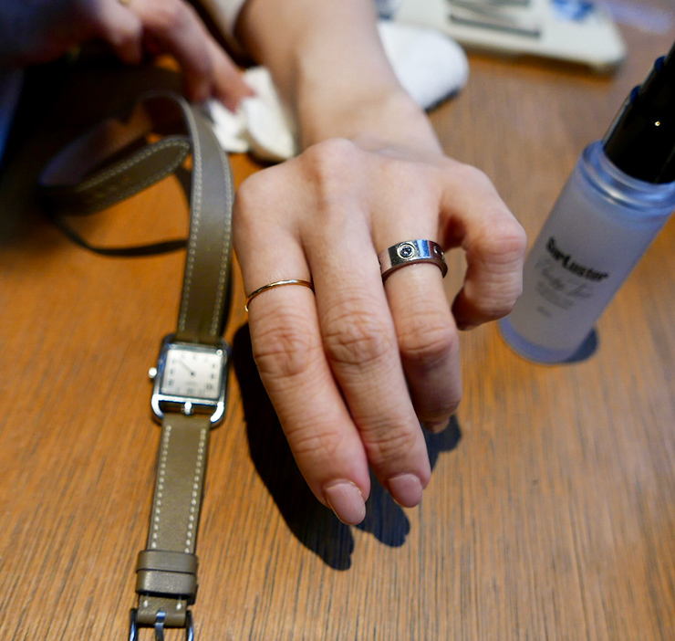 はい、お恥ずかしながらそれもそんなに、、、(笑)。初めて手入れをしたのは、結婚10周年で新しい記念品を買いに行こうと、婚約指輪を購入したお店にいったときですね。当時の指輪を快く磨いてもらって、手入れというものを初めてしてもらいました。それ以来専用のクロスで乾拭きくらいはするようになったものの、あまりキレイになっている実感がなくて。やっぱりプロにまかせようと思っています(笑)。でも、毎日、掃除をして家族の洗濯をして、自分のケアもしてってやっていると時間があっという間に過ぎるんですよ。女性、特にママってそれぐらい本当にやることが多いので、小物の手入れは優先順位の下の方にきちゃうのかなと思います。